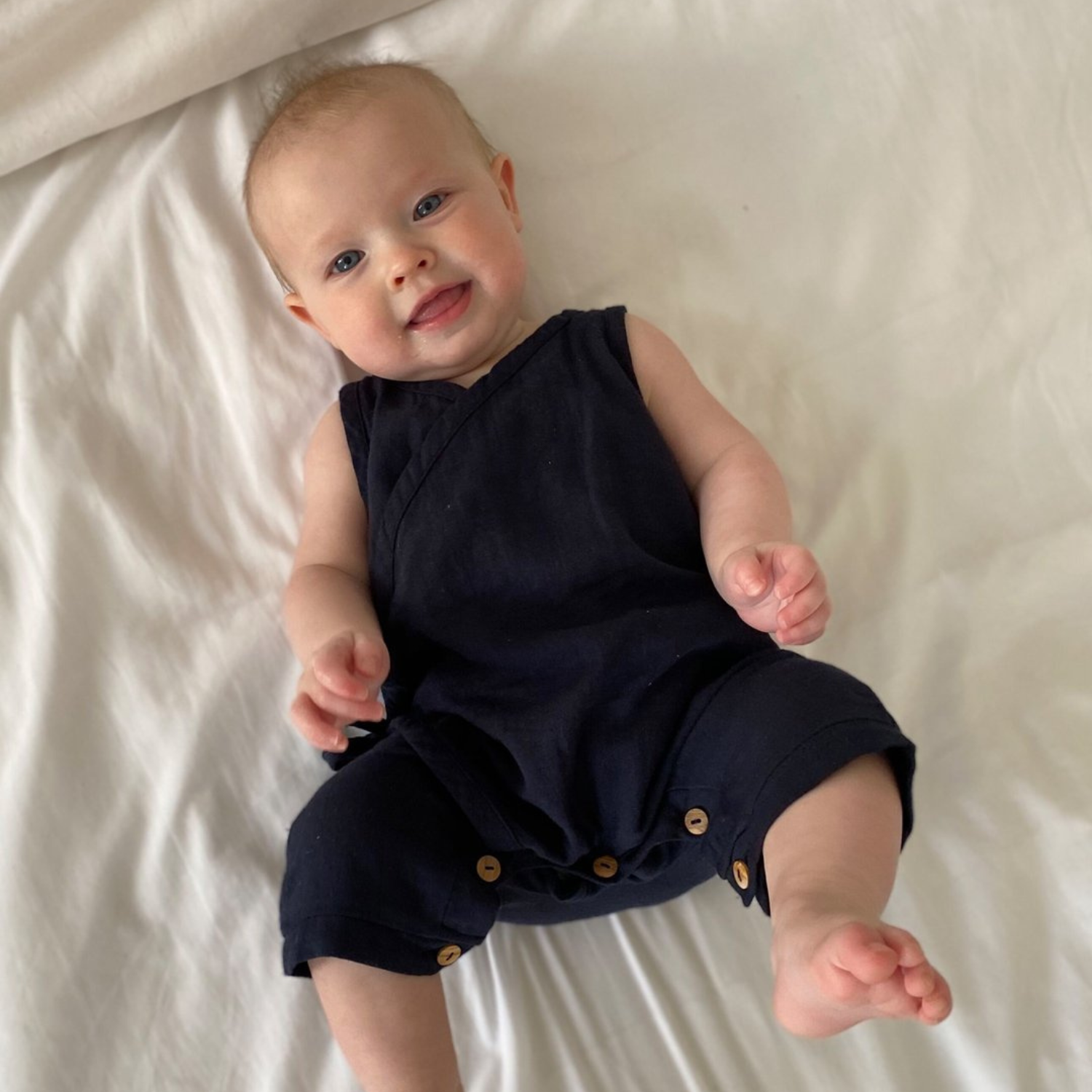 The EVAN romper is made from super soft organic cotton which is gentle against delicate and sensitive skin. Featuring button fastening at the legs and a tie at the chest, this romper would make the perfect gift to anyone preparing to welcome a new arrival.