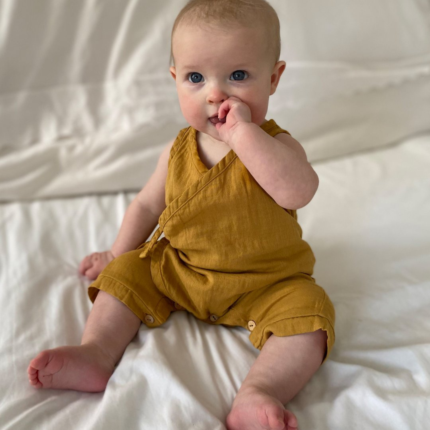 The EVAN romper is made from super soft organic cotton which is gentle against delicate and sensitive skin. Featuring button fastening at the legs and a tie at the chest, this romper would make the perfect gift to anyone preparing to welcome a new arrival.
