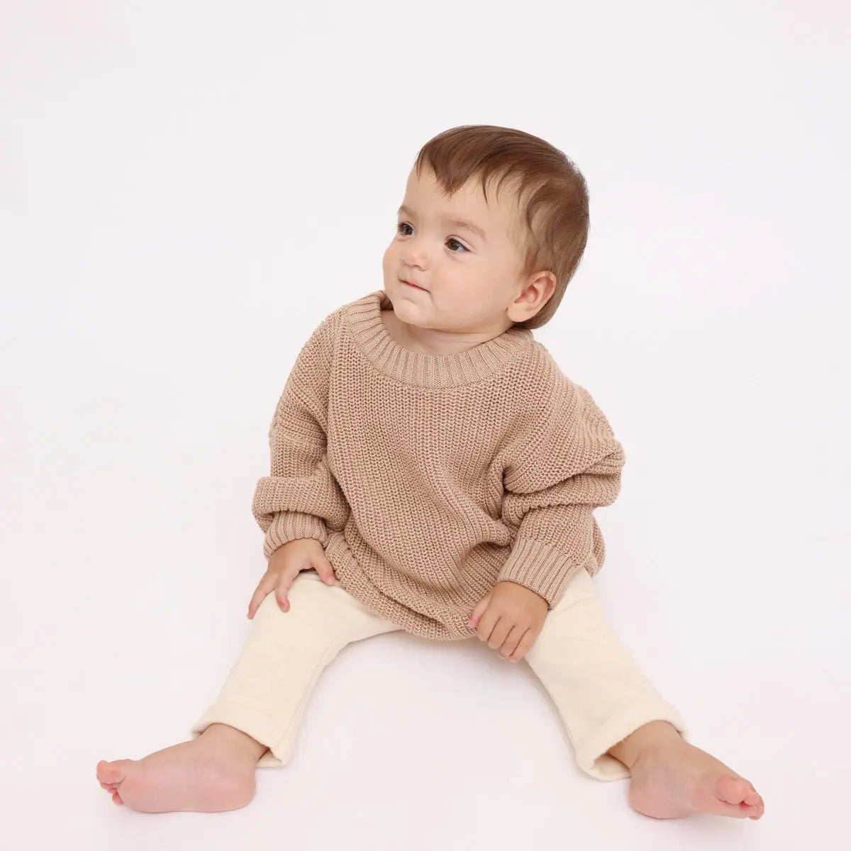 Denk je erover om onze gebreide kindertrui van biologisch katoen te huren? Deze zachte en comfortabele trui voor baby's en kids is niet alleen enorm zacht om te dragen, maar ook een verantwoorde keuze.