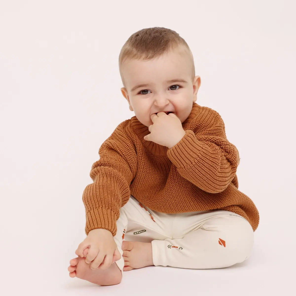 De warme terracotta kleur is subtiel en kan prima worden gecombineerd met andere kleuren en kinderkleding items. Je zult zien dat je deze gebreide kindertrui vaak uit de kast pakt, helemaal op een koude winterse dag.